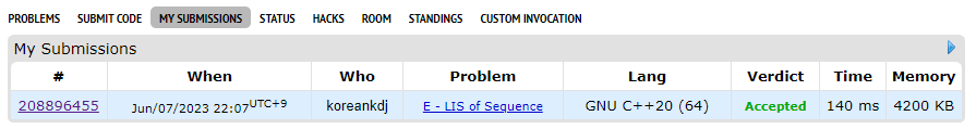 // LMax는 좌측부터 시작해서 최대 LIS값